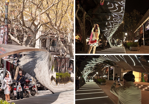 上海新天地的一個(gè)街頭公共藝術(shù)設(shè)施。該公共裝置位于馬路和步行廣場之間,與城市以及其中來往的人群發(fā)生著關(guān)聯(lián)。UNStudio的Ben van Berkel提到消費(fèi)文化不僅僅是購物那么簡單,而是和整個(gè)生活圖景有關(guān),我們消費(fèi)我們的城市,我們周圍的建筑,我們周圍的人群,甚至包括我們自己。