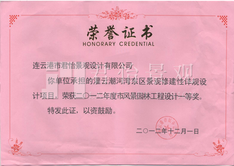 2012年獲獎(jiǎng)證書(shū)