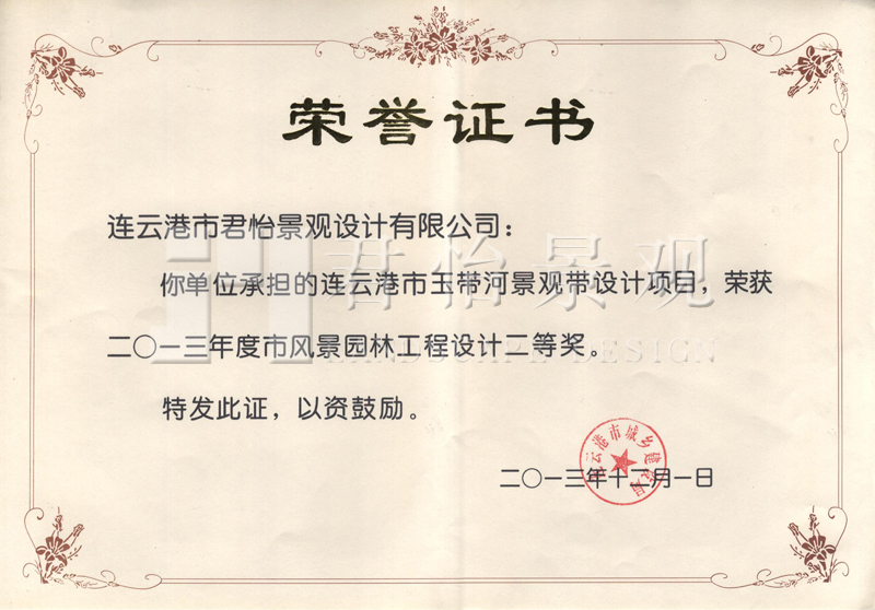 2013年獲獎(jiǎng)證書
