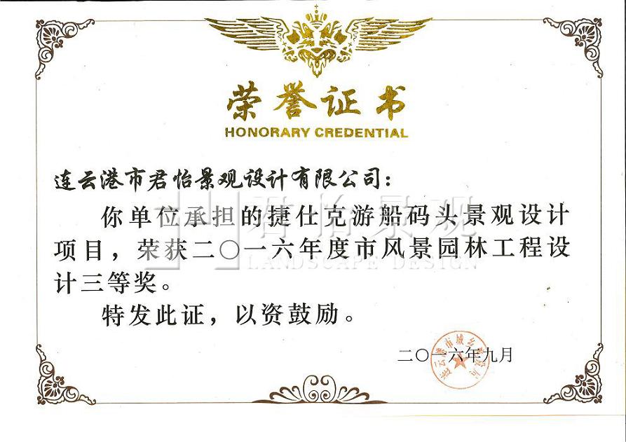 2016年獲獎(jiǎng)證書(shū)